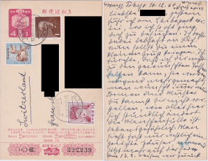 Die Neujahrskarte aus meiner Sammlung ist etwas ungewöhnlich, da sie von Japan aus in die Schweiz verschickt wurde.